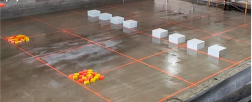 Similar to Problem #1, the experiments chosen for this benchmark were conducted at the O. H. Hinsdale Wave Research Laboratory at Oregon State University. The goal was to measure debris movement of a large number of small particles over an unobstructed and obstructed beach. The debris consisted of rectangular wood and HDPE boxes and were placed in a group unconstrained on a flat section of the beach. A single wave crest was generated, and the debris was allowed to move with and without obstacles.